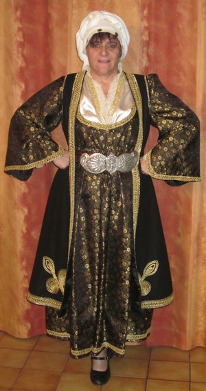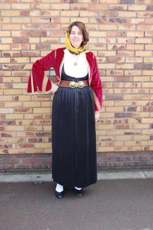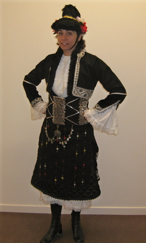 Kostuum van Kalamoti (Chios), handwerk van de" Dames van het Handwerkverbond" van Kallimasia (Chios)
